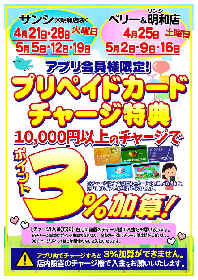 【アプリ会員様限定!】プリペイドカードチャージ特典