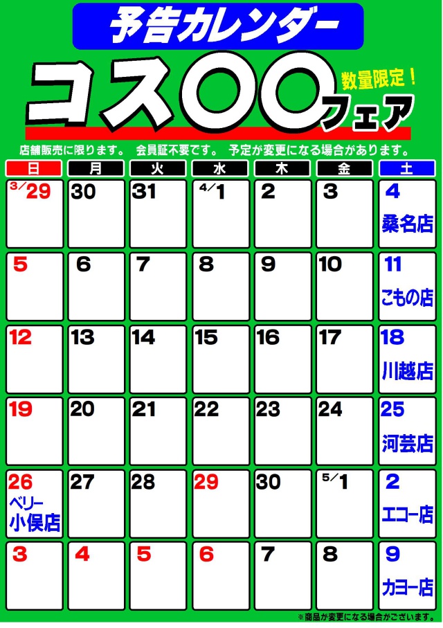 コス〇〇フェア【予告カレンダー】